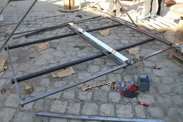 Están montados en los tubos de 50 x 50 mm, corte y perforado como se indica en el modelo 3D.