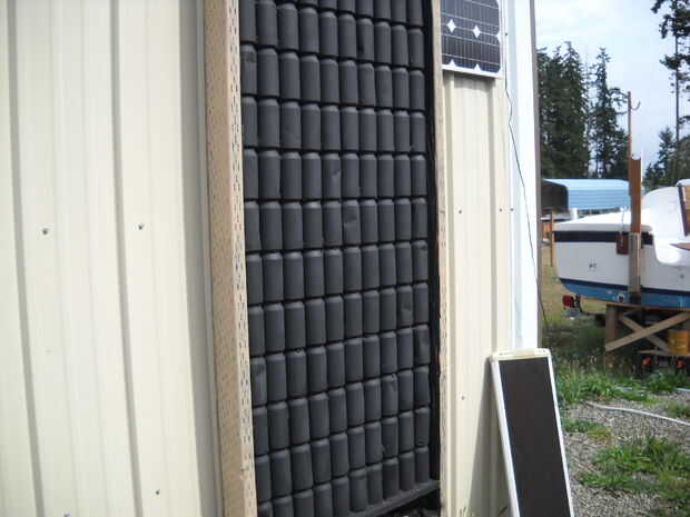Este instructable es un calentador solar puede pop que hice hace unos años. No tomar ningún crédito para el diseño, he encontrado un montón de instructables y videos en línea sobre cómo hacerlo. Éste está hecho de 144 latas de pop, una puerta corrediza de vidrio, una madera contrachapada y caja 2 x 4 aislados con aislamiento de 1/2 pulgadas, un panel solar de 15 vatios, un ventilador de ordenador de 12 voltios y un interruptor de resorte que hace clic en a 100 grados.