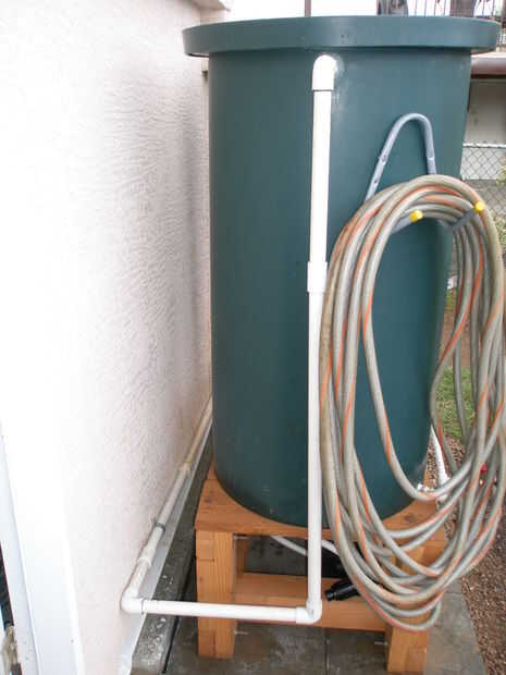 1" pvc desbordamiento línea del último barril hacia la bajada de agua. Asegúrese de que mantener que un ángulo de drenaje hacia la bajada de agua o el sedimento puede acumularse en la línea.