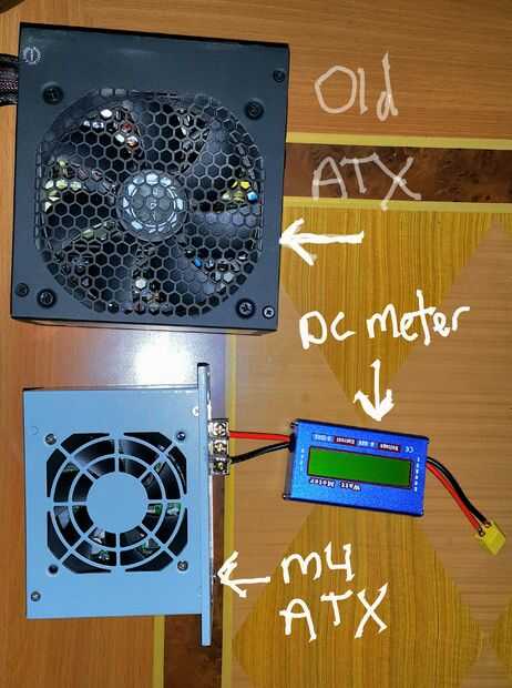 Notar la diferencia de tamaño. El atx m4 proporciona 250 vatios máximos en eficiencia 94percent. El conector de la cpu de 12 voltios es una clavija de 4 pines solo que es lo suficientemente buena para mi configuración. Necesito 12V y 5v para mi domótica y dispositivos de comunicación por lo que empujó hacia fuera de los molex de un enchufe para este propósito.