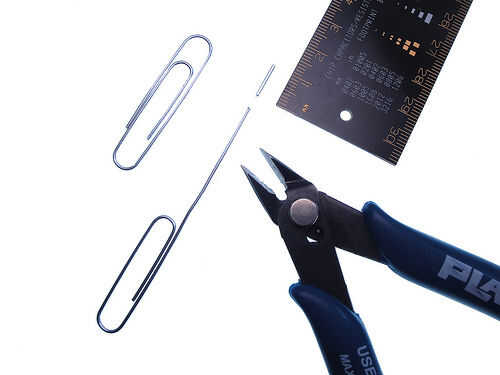 Desplegar una pierna de un clip, cortar de aproximadamente 1 cm. acabado desplegar el resto de lo clip y trabajar en un círculo que toque las esquinas de la célula solar.