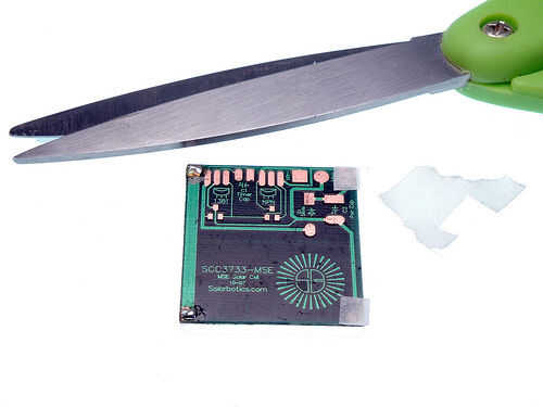 Cortar el unos cuadrados y cubrir los botones de potencia en la esquina de la célula solar.