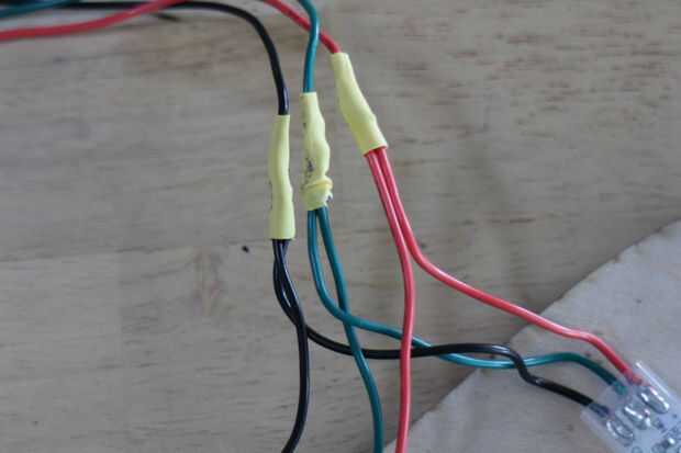 Dividió la franja va en 2 direcciones, con 3 secciones en cada lado - y luego el alambre a un punto de unión común que pueda recibir señal desde mi unidad de control de cesta de bicicleta.