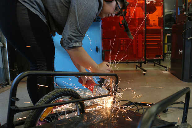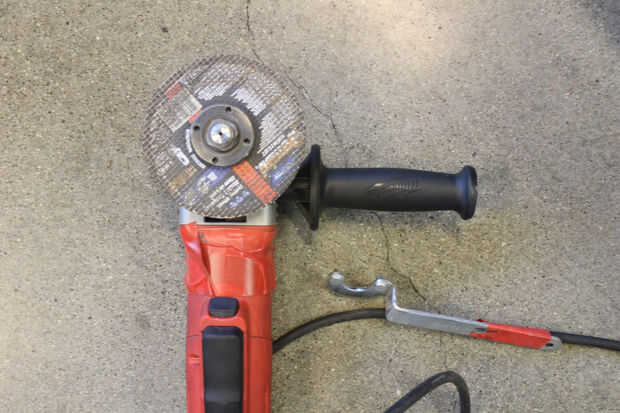 Usé una amoladora con un disco abrasivo para eliminar las barras centrales en el remolque. Gracias por la ayuda con las fotos de Jon!