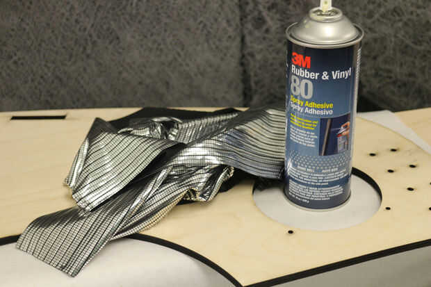 Adherir la tela a la madera suele ser bastante simple, y hay toneladas de maneras personas han averiguado que enlace los dos - pero para este proyecto que quería usar algún adhesivo en aerosol. Rociar una capa uniforme a ambos lados, permite virar, y luego, unen los dos.