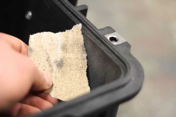 Descubrí que Desbaste la superficie de la caja con papel de lija antes de epoxying los soportes en posición ayudado grandemente con la adherencia.