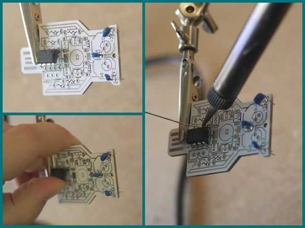 Siguiente el chip. Tenga muy cuidado con perdida descargas eléctricas, puede freír el chip. Sabemos esto por experiencia, ay. A tierra antes de manipular el chip por tocar primero un objeto metálico grande. Nos encontramos con los tornillos de las salidas de tomacorriente se basan generalmente y a menudo cerca.