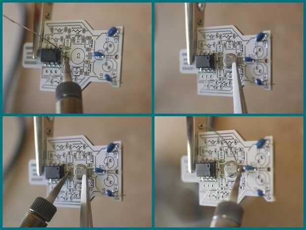Porque esto es para montaje en superficie, recomendamos primera soldadura agregar el botón en el tablero. Luego usar unas pinzas o alicates, sostenga la tapa en su lugar mientras la soldadura de fusión. Una vez que esto se ha solidificado, la soldadura en la ficha otros. Puede volver atrás y añadir soldadura un poco a la primera pestaña para hacer más agradable si quieres.