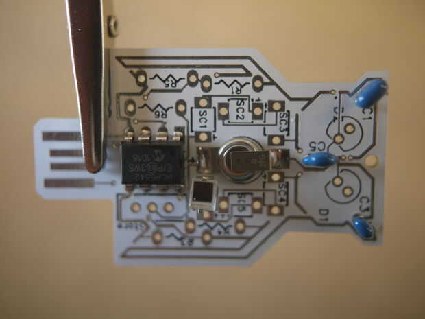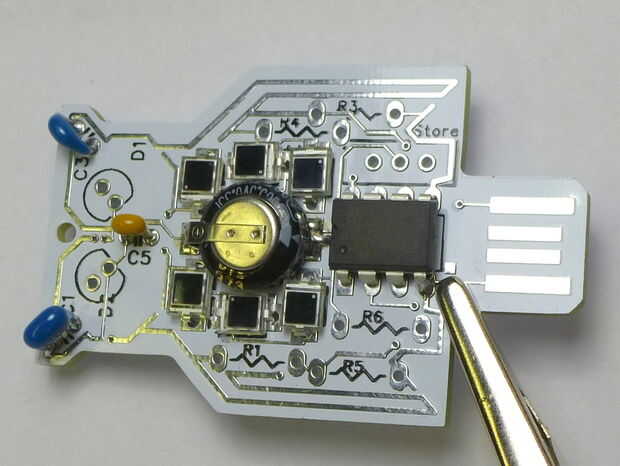 Siguiente foto-diodos, también conocido como las células solares mini. Es realmente importante que éstos se ponen correctamente, y tenemos dos revisiones de la Junta. Mira en la parte posterior de la placa.