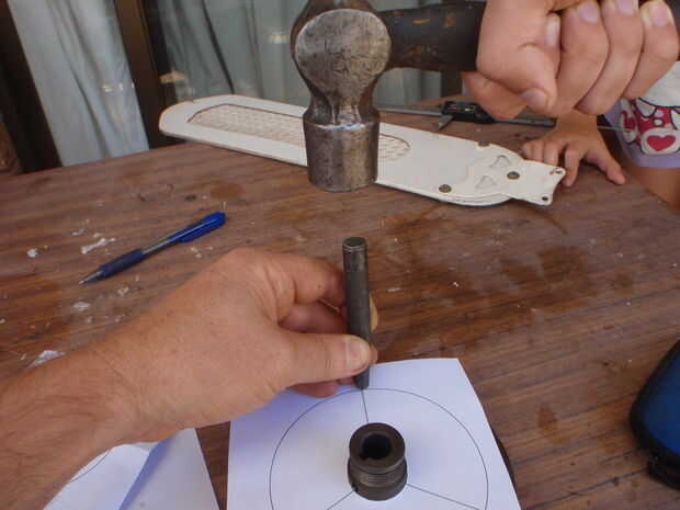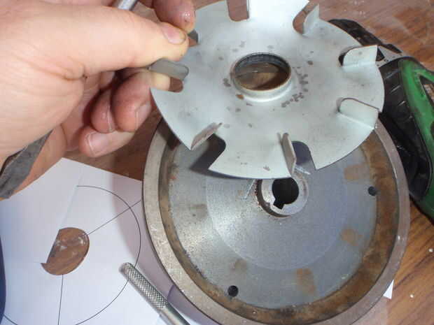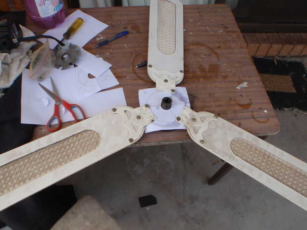 Una vez que los 3 primeros agujeros taladro pueden montar las aspas del ventilador y el centro de continuación 3 agujeros perforados como se muestra en las fotos.