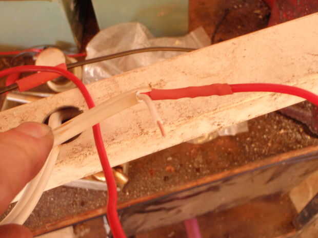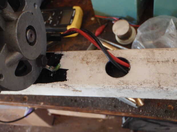 El motor conduce entonces pueden ser extendidos por soldadura y longitud de cable y usando el calor retráctil para aislar todo. Una sierra del agujero fue utilizada otra vez y el hilo de rosca hasta el centro del tubo para mantener todo ordenado.