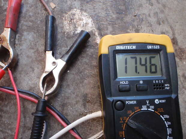Con un panel de 40 Watts 12 voltios a pleno sol fue dibujo 1,65 amperios en el 17.46volts (28,8 vatios).
