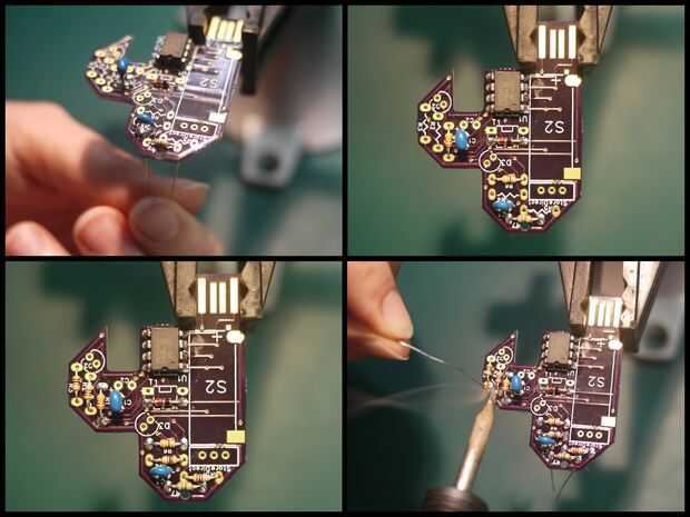 Siguiente las resistencias. Doblar las puntas para que ajustaban y tiran de ellas a través de la Junta para que sean agradable y apretado.