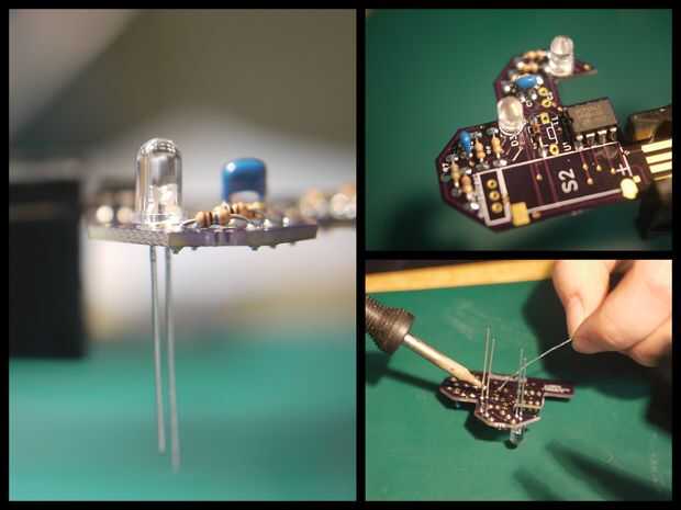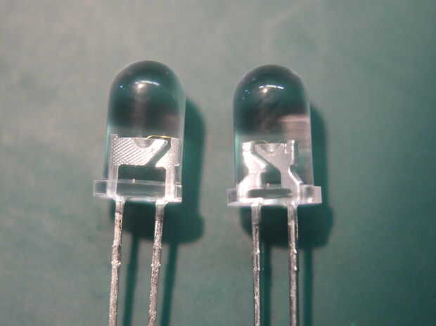 También es importante que se sueldan en correctamente. Pero por suerte es mucho más fácil decirle a la polaridad. El círculo alrededor de sus orificios tiene un lado plano. Se alinean con el plano en el LED y tienes la polaridad correcta.