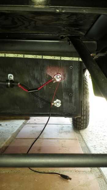 Ahora, el truco aquí es ye olde mecanismo de descarga. Hay movimiento relativo entre la caja principal y la caja de la batería cuando se utiliza el mecanismo de descarga, así que tuve que correr los cables donde no consiguen pinchado, se extendía o no en mal estado. La manera que lo hice fue los cables fuera de la base y a lo largo de la parte inferior de la planta, bucle alrededor para sujetar en el centro de la subestructura. Todas estas piezas están atornilladas entre sí y no se mueven concerniente a uno otro, así que estamos bien hasta ahora. La razón de la extraña ruta era llegar a un punto que sólo se movió un poco cuando se utiliza el mecanismo de descarga. Este punto en el piso mueve lo más mínimo con respecto a la caja de la batería, y por lo que era el lugar ideal para fijar el cable a la caja antes de que haga al aire libre saltar sobre a los terminales de la batería.