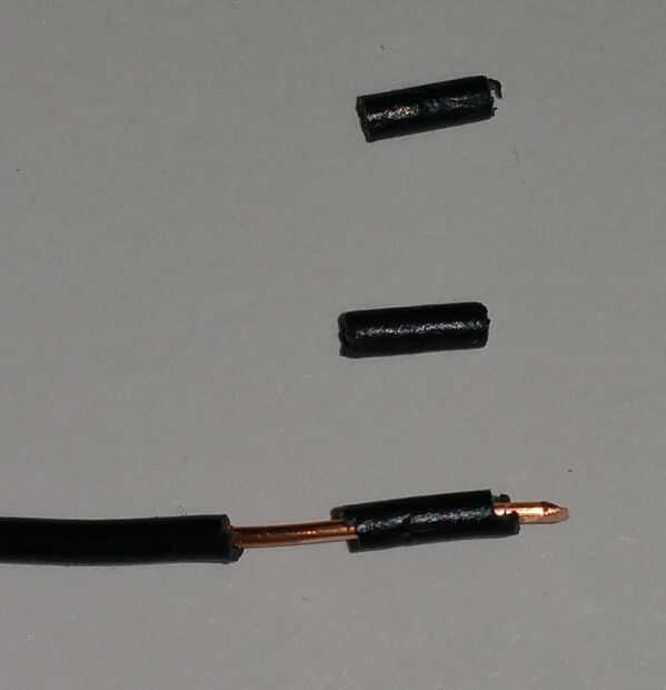 4) con cuidado la tira dos, 1/4 de pulgada pedazos de aislamiento de un cable AWG 22. Suavice los bordes con un cuchillo o una lija. Son retenedores de eje para mantener el rotor en posición. Deslice en la aguja a cada lado del rotor.