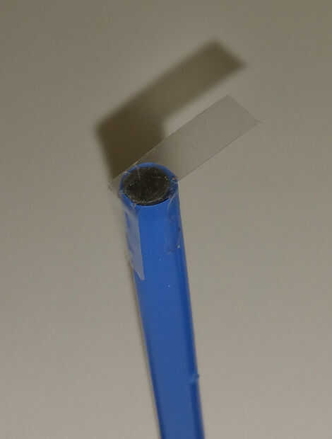 6) pegar opcionalmente, un segundo imán de 5 mm sobre los ya instalada con cinta. Esto añade más masa y un campo magnético mayor. Mis imanes son muy delgados y llegaron a cuatro en un paquete.
