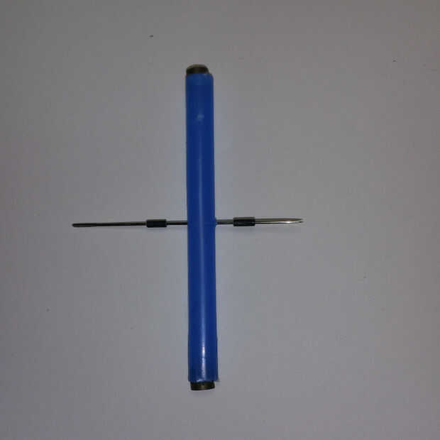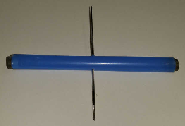 3) pega la aguja a través del centro de la pajita. Asegúrese de que va directo. Girar con los dedos y compruebe que cualquier bamboleo. Que sea equilibrada y verdadera como sea posible. Un truco es dibujar una línea a la media de altura deseada en una hoja de papel. Palillo de la aguja con el rotor en un extremo de la línea. Un extremo de la pajilla en la línea de la marca. Girar y el otro extremo en la línea de la marca. Cortar la paja a cada marca con las tijeras. Lo mejor que puede, pero no te preocupes si no es absolutamente perfecto.