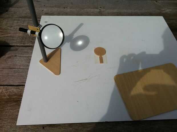 Pega tu lupa soporte y forma una base sólida y pegar el material que desea grabar a la cama.