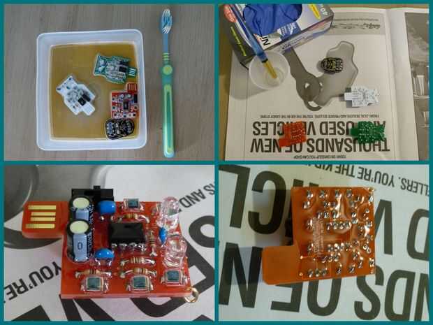 4. usando un lado sello cepillo desechable. Evitar que cierre el interruptor y la ficha USB todo lo demás puede ser cubierto con epoxi y seguir trabajando, incluso los diodos de la foto.