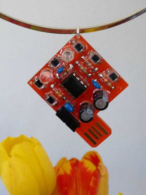 Eres Bienvenido a cadena hasta su genialidad blinky como un collar, un par de aretes, llavero o simplemente de adorno. También puede enlazar un alfiler en la parte trasera y llevar en una mochila o una camisa. Sin embargo, asegúrese de que hay una capa aislante de epoxi o pegamento entre el pasador metálico y la parte posterior de la placa de circuito. La Plaza Roja es muy baja potencia y puede fácilmente estar en corto circuito hacia fuera por tocar la espalda (o sudoración en él, ew.) Un broche de metal se corta hacia fuera de la Plaza y no funcionará correctamente.