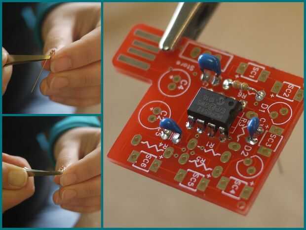 Siguiente las resistencias. Doblar las puntas para que ajustaban y tiran de ellas a través de la Junta para que sean agradable y apretado.