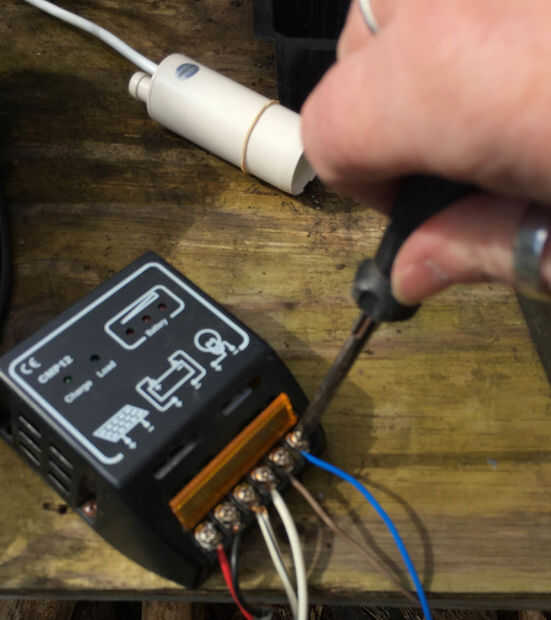 En primer lugar enrosca los cables en sus lugares correctos en el regulador de la energía solar.