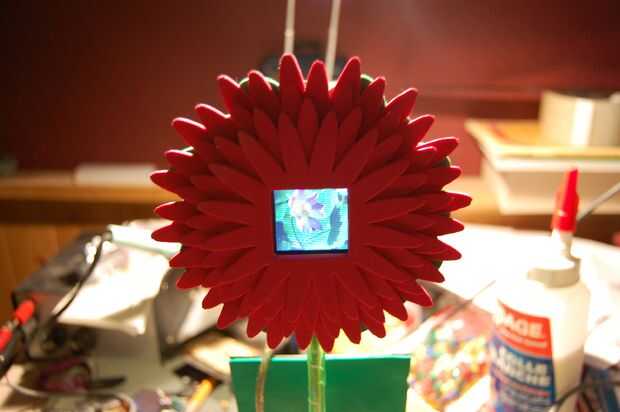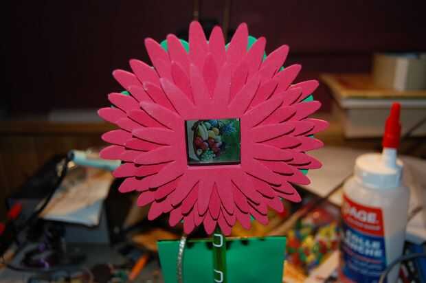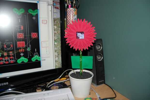 El núcleo es un marco de foto digital llavero estándar estándar. Está montado en un gabinete de lujo, en este caso una flor que se modela después de un crisantemo. Además de eso, se ha añadido una célula solar para que el marco se ejecutará indefinidamente cuando se coloca en una ventana soleada! O, simplemente conéctelo a cualquier puerto USB y déjela funcionar desde allí.