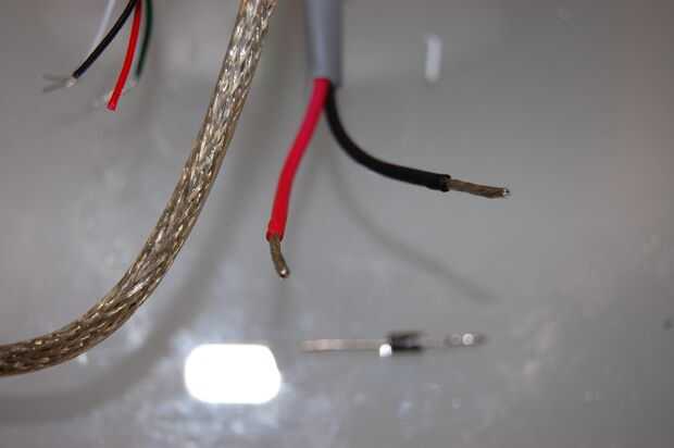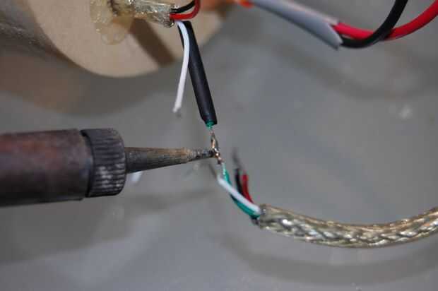 Por último, soldar entre sí los dos cables verdes, y los dos cables blancos juntos, con calor y encogen.