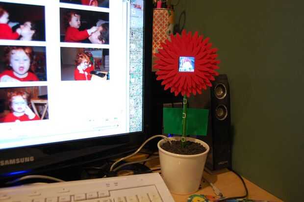 Y ahí lo tienen: un solar powered marco de foto digital disfrazado como una flor. Hace un gran regalo y se ve super aparece en una ventana soleada o junto al ordenador.