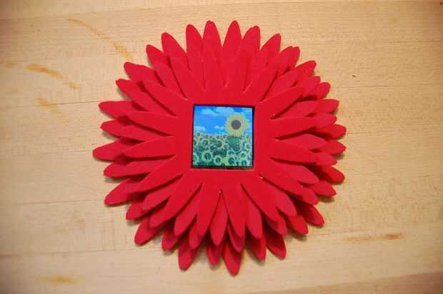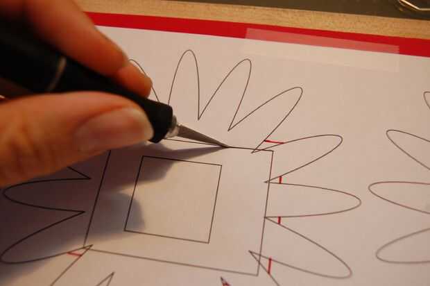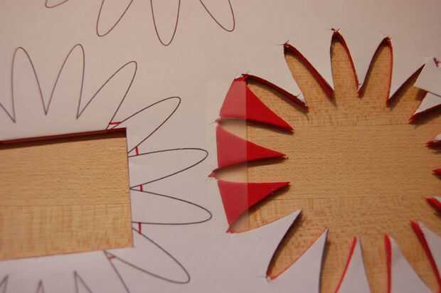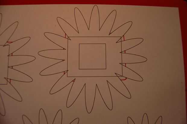 Usted puede haber notado que el borde de la abertura para el marco digital obtiene terriblemente cercano o incluso superpone al borde del diseño pétalo. ¡Eso está bien! Con un lápiz, dibuja un nuevo camino para el pétalo alrededor del recorte, para que tenga al menos 3 mm de separación. Se trata de oculta (o no sensible) cuando apilar las capas encima de la otra. (Usted puede también hacer esto antes de tiempo en el programa de gráficos).