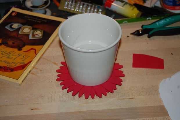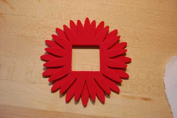 Comience con las primeras y segunda capas - los patrones más pequeños. Apilarlos para que alinee el recorte para la pantalla, y los pétalos son alternados. Cuando esté satisfecho con la alineación, levante la capa superior y aplicar pegamento en la parte inferior. Palo atrás exactamente como era antes. Espere un poco mientras el pegamento se seque, para facilitar el manejo.