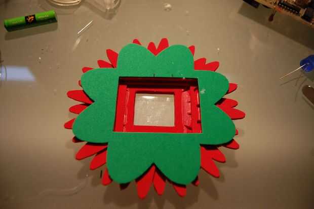 Ponen el marco digital en su parte posterior y colocar el patrón del pétalo que se ajusta alrededor de la luneta en su lugar. Seco-quepa las capas de dos en la parte superior y arregle la alineación para un buen ajuste. Deberá quitar el pétalo de capa bisel y colocarlo boca abajo, dependiendo de las dos capas superiores. Una vez más, asegúrese de que la pantalla esté alineada correctamente y que los pétalos son alternados. Cuando esté satisfecho, pegar las dos capas superiores en su lugar en la capa de bisel. Intente no conseguir pegamento sobre el marco digital, en caso de que necesite quitar más tarde.