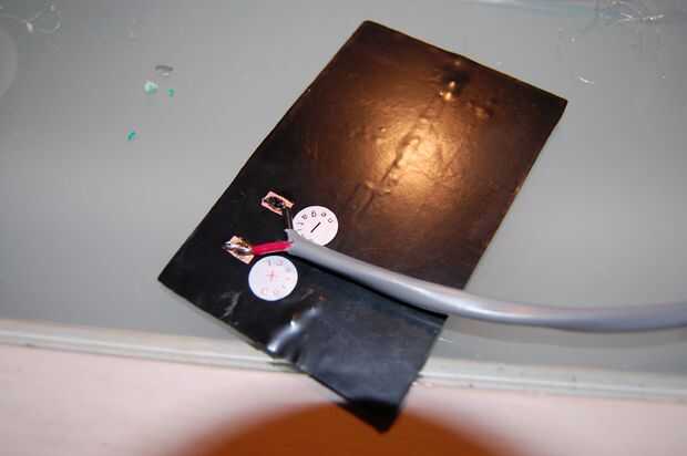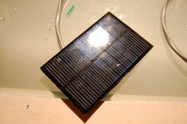 El panel de conexión es fácil. Empezar por corte de dos piezas de alambre de aproximadamente 8 pulgadas de largo. Aproximadamente medio centímetro de los extremos de la tira y soldarlos a la parte posterior del panel solar. En mi panel solar, dos piezas desnudas de cobre fueron expuestos en la parte posterior del panel para poder soldar en. Puede pegarse con Convenio y hacer el lado positivo rojo y el negro de lado negativo - hará que la conexión más fácil más adelante.