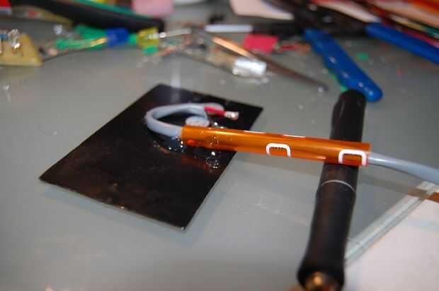 Enrosque los cables en la paja y como con la flor de exprimir una curva en los cables. Mantenga la paja contra la parte posterior del panel solar con el extremo en el centro. Debe ser en ángulo, para que cuando se instala el panel solar apunta al cielo algo. Pegue los cables y la paja en su lugar con pegamento caliente y asegúrese de mantener la gota en su lugar hasta que el pegamento se haya endurecido.
