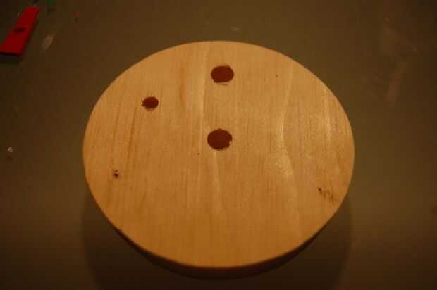 Cuando esté satisfecho con el ajuste, pasar a la prensa del taladro. Seleccione un poco los partidos, el diámetro de la flor del tallo tan de cerca como sea posible, pero no más pequeño. Perfore un agujero en el centro de la madera de la flor y uno de 3/4" desde el borde del panel solar. A continuación, perfore otro agujero más pequeño que el diámetro del cable USB cerca del orificio para el panel solar. (esto es opcional - puede ocultar el cable USB dentro de la olla si quieres)