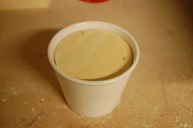 Prueba de ajuste la cama madera flor en la maceta - debe encajar cómodamente sobre una media pulgada por debajo del labio. De hecho, incluso puede tomar unos whacks conseguirlo nuevo!
