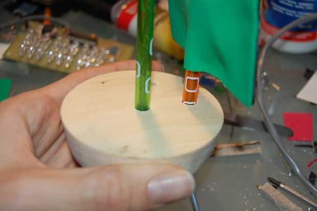 El tallo de la flor en el agujero de ajuste de prueba. Debe quedar ceñido. Si la madre no va a través, ensanchar el agujero ligeramente usando un archivo o un papel de lija envuelto alrededor de un clavo.