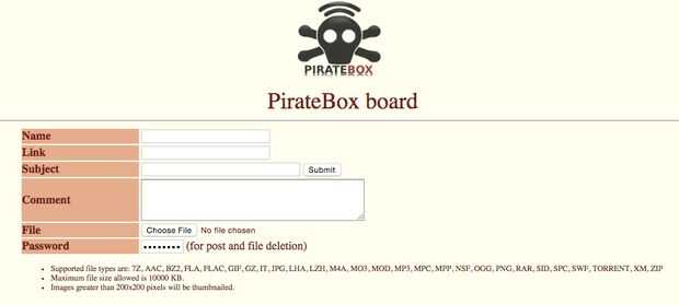 Carga la siguiente URL en un navegador web: http://piratebox.lan/board/kareha.pl