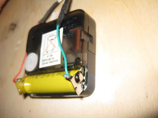 Uno de los requisitos de esta versión era que mi hijo no quiere modificar de forma permanente el reloj de que estaba tan orgulloso. Para que los contactos de la lámpara solar de doner son como cuña entre el reloj y los contactos del reloj sí mismo.