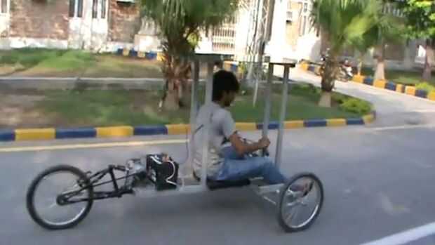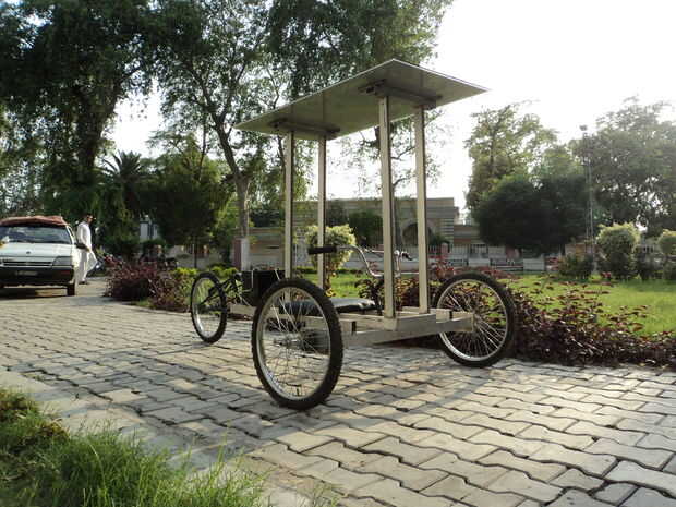 Diseñado y construidos en sólo 18 días en la Universidad de ingeniería y tecnología de Lahore en Pakistán, 7 x 3,5 x 4,5 pies (2.13 x 1.06 x 1,37 metros), características low-rider de 132 libras (60 kg) a la medida, marco de aluminio en forma de t en el frente del vehículo y la parte trasera de un viejo marco de la bicicleta en la parte trasera, se unió a justo detrás de la zona de asientos para los amortiguadores de choque. El cochecito reverso-con dos ruedas en la parte delantera y uno en la parte trasera - tiene también un pabellón fotovoltaico 40 Watts sobre el jinete que carga la batería de a bordo 12v/80Ah seco célula solar.