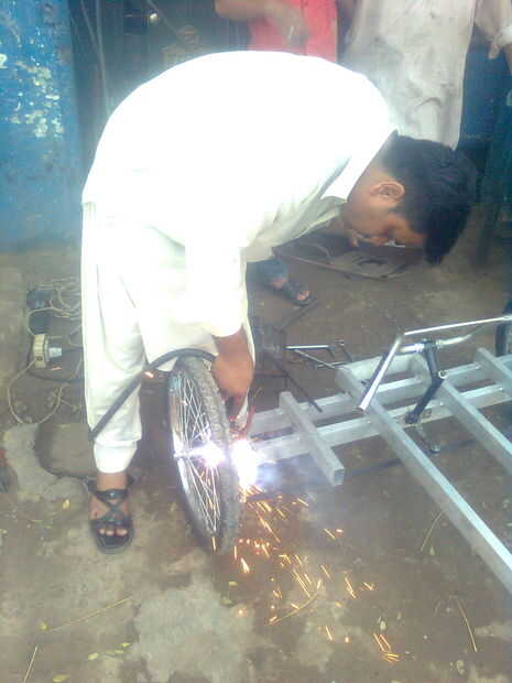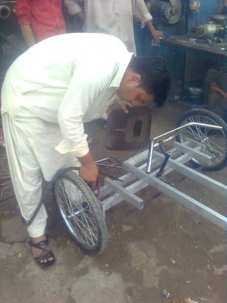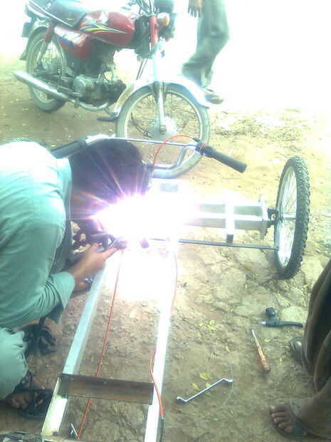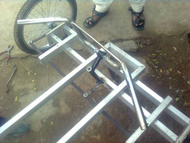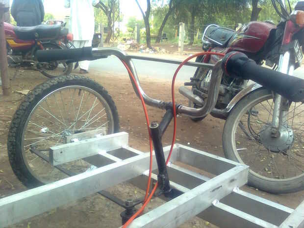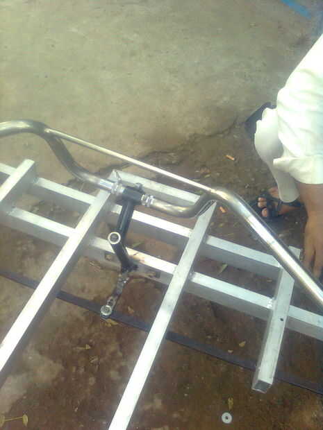 Puesto que esto un neumáticos reverse trike tan frontal dos debían utilizarse para el manejo... usé el mecanismo de Unión en T para dirigir las ruedas!...