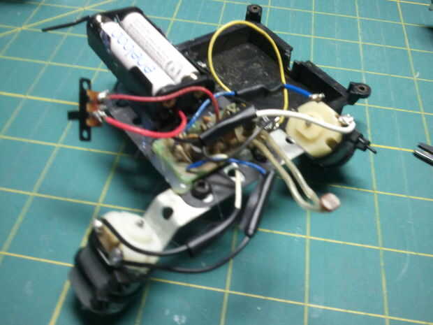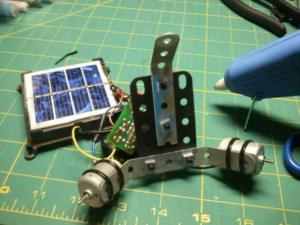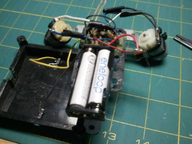 En este paso es necesario para montar el circuito sobre un marco. Para mi marco utilicé algunas piezas al azar de un montador, pero hay muchas cosas que se pueden utilizar. La forma de mi robot inspirada en robomaniac de beetlebot v2 , que se puede encontrar aquí.