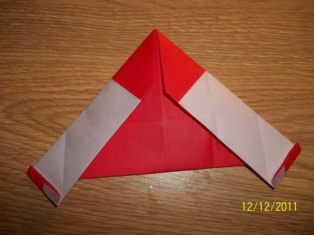 Cantos de doblez, tanto en esta vez para que la parte superior se alinea con el pliegue del centro. a continuación tomar los extremos de la parte inferior y doblar para arriba.