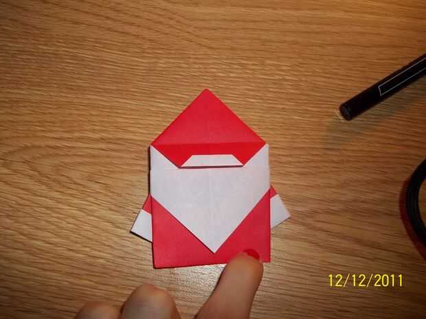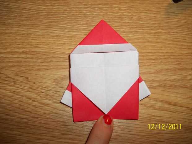 a continuación Dale la vuelta al otro lado y comenzar a plegar la tapa roja y blanca dos veces para que se vea como la imagen 2.