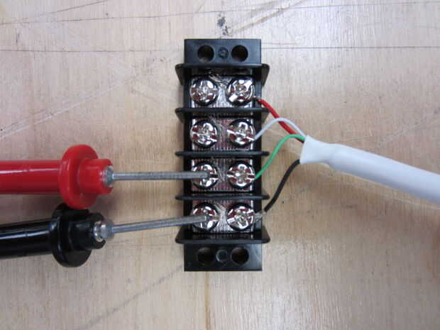 - Prueba de las líneas de alimentación (rojas y negras) que hicieron en los dos pasos anteriores para comprobar que 5 voltios están presentes cuando el convertidor de corriente y tensión no está presente cuando el inversor está apagado.