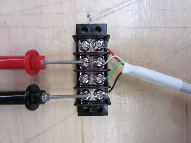- Sondas de la prueba a los datos de verdes plomo y plomo (negro) de la tierra como se muestra en la cuarta foto. La tensión también debe leer muy cerca de 2 voltios.