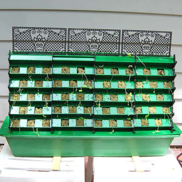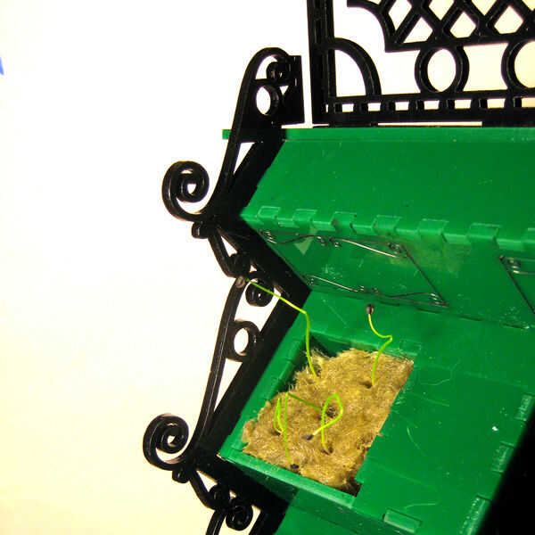 Hay 1 millón formas de configurar algunos reciclables y una bomba de pecera para cultivar algunas plantas. Lo he hecho un montón de veces. No era lo suficientemente bueno para la potencia que se estaba usando, y los materiales nunca que duraron mucho. Botellas de plástico sirven solamente para usarse una vez - muchas botellas incluso decir no reutilizarlos en la etiqueta. Este sistema utiliza nuevos materiales para la construcción inicial, pero una vez que se configura sólo requiere agua, fertilizantes, semillas/esquejes y la hoja ocasional de lana de roca de entonces encendido hacia fuera. Usando nuevos materiales también reduce las posibilidades de que contaminantes sorpresa hará que los alimentos (por lo menos debe ser mejor que los equivalentes de la tienda de comestibles.) La bomba es solar powered - tira de la solución del depósito abajo para el goteo sobre las raíces de las plantas dentro de la caja. La huella es de 36" por 8" y tiene capacidad para 50 plantas. La inspiración vino de un libro de la industria siderúrgica francesa antigua que tengo. Pensé que si iba a hacer esto, así podría hacerlo tan espectacular como pude. Yo estoy corriendo al aire libre durante el verano, pero luego viene dentro para mantener trabajando cerca de una ventana soleada para mantenerme comer fresco y sano a lo largo del año.