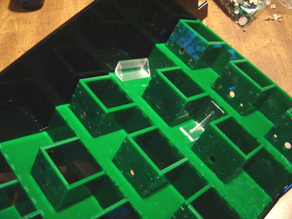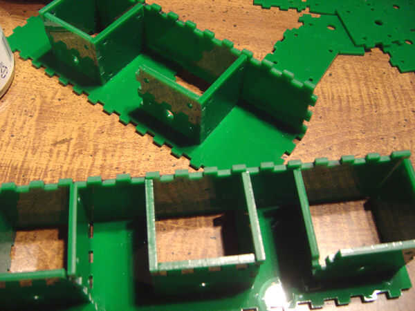 He incluido una imagen se trata de básicamente todas las partes donde se alineen. Todo esto es juntar las piezas y cemento en su lugar. Conjuntos de tres pequeñas plazas constituyen el soporte para cada bloque de lana de roca - hay pequeños agujeros en ellos para que pueda pinchar los cubos en el lugar con un palillo si es necesario (lo que es fácil extraer bloques o moverse según sea necesario.) Yo no pegue mi caja en la base por lo que puedo tirar cosas aparte más adelante para la limpieza y tal. También yo no pegue el enrejado en la parte superior.