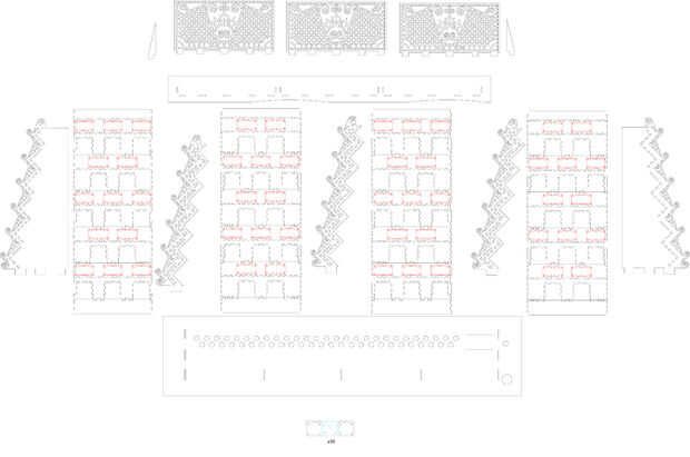 Tanto un jpg y un archivo dxf se incluyen - querrá ver en tamaño completo para ver los detalles y clic en el jpg. Las piezas están dispuestas en el orden que van juntos, y las líneas rojas indican una línea grabada. Haga clic derecho y descargar el dxf si usted quiere verlo.